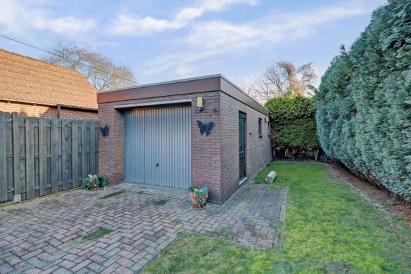 Vrijstaande, diepe garage van circa 30 m², geschikt voor parkeren, opslag of hobbygebruik.