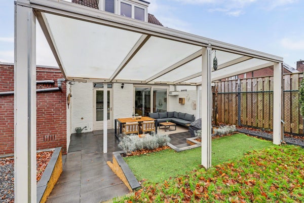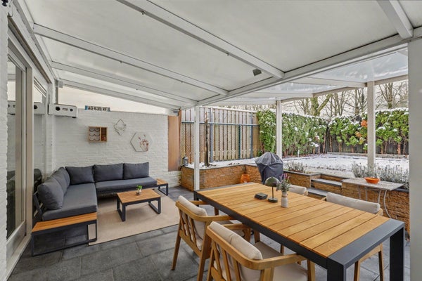 De achtertuin is gunstig gelegen op het zuiden, waardoor u hier optimaal van de zon kunt genieten. Een fijne plek om te ontspannen of gezellig buiten te zitten.