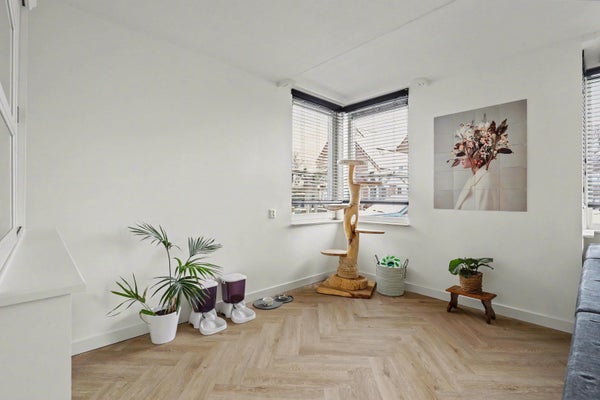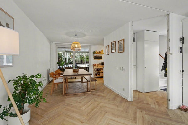 Via de entree met meterkast komt u in de hal met toiletruimte, voorzien van een toilet en fontein. Vanuit hier bereikt u de ruime en lichte woonkamer. De woonkamer biedt voldoende plaats voor een zit- en eethoek en staat in directe verbinding met de achtertuin via de schuifpui.