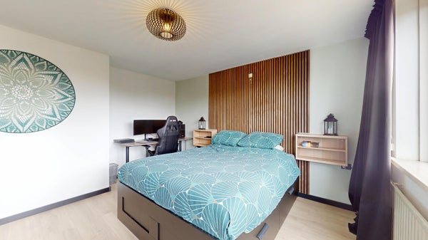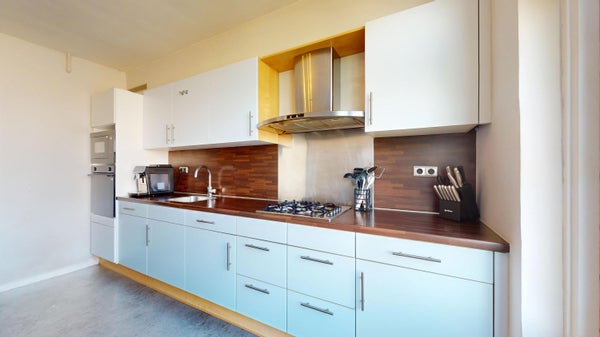- De tussenwoning heeft een woonoppervlakte van 104 m² en beschikt over 6 kamers, waarvan 3 slaapkamers;