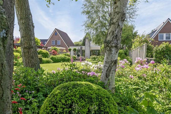 Vanuit verschillende zitjes kun je genieten van een steeds wisselend zicht op de tuin en het huis.