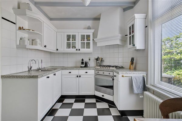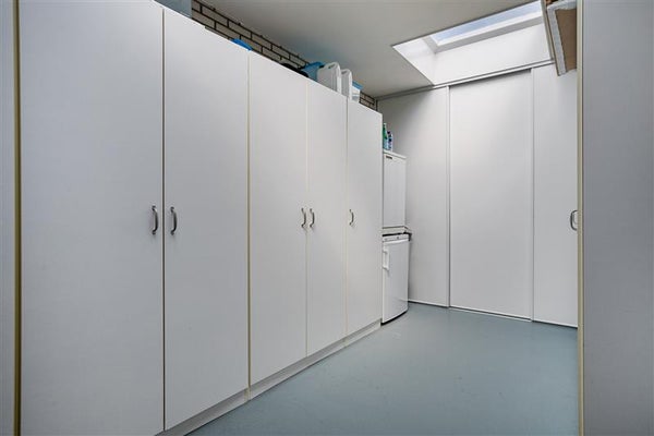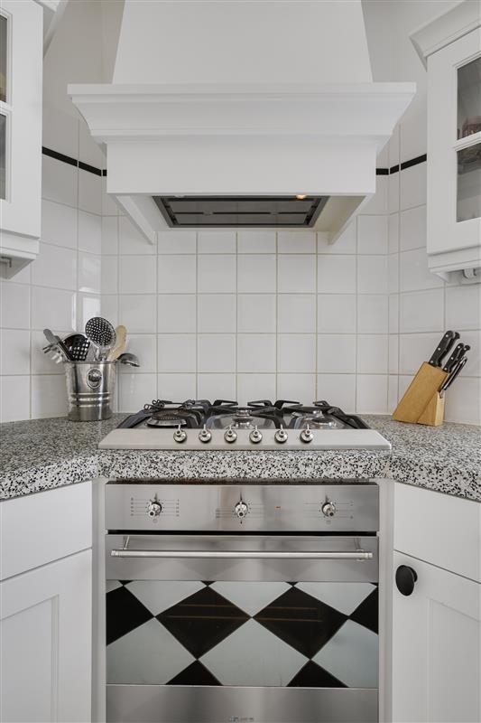 Daarnaast is de keuken uitgerust met diverse apparatuur: een moderne kookplaat met praktische oven, een vaatwasser, combi oven/magnetron, quooker en een ruime vries/koel combinatie. Vanuit de keuken heb je via een hal met inbouwkasten toegang tot de werk/logeer kamer en grote bijkeuken met veel kastruimte . Deze laatste is eenvoudig om te bouwen tot extra (slaap) kamer dan wel kantoor als daar behoefte aan is.