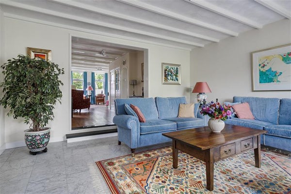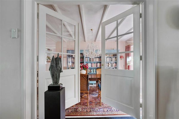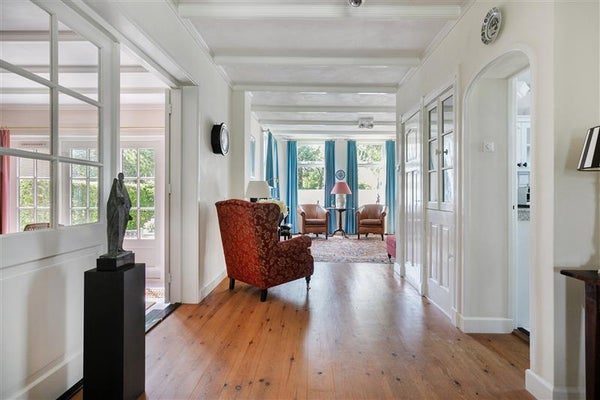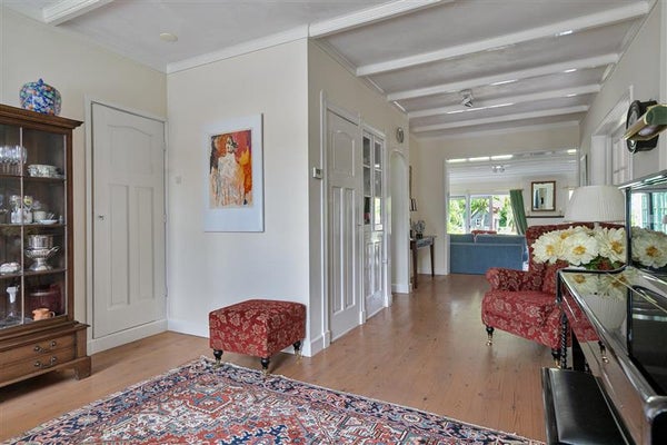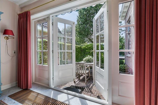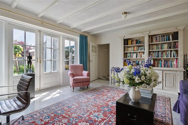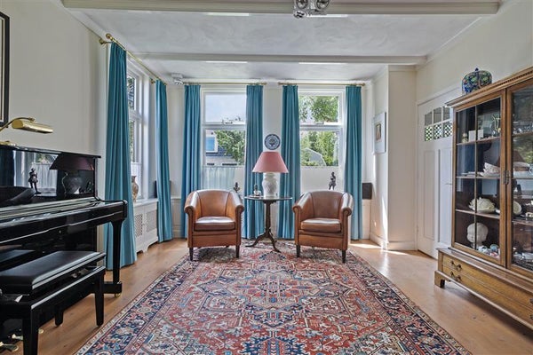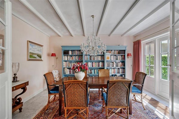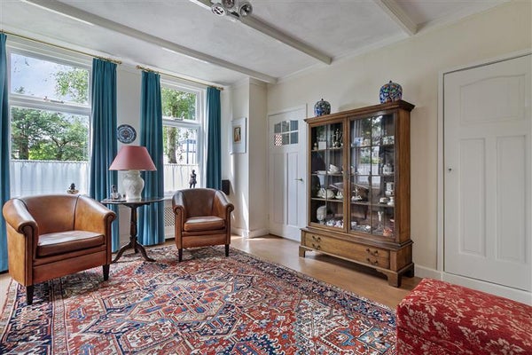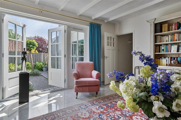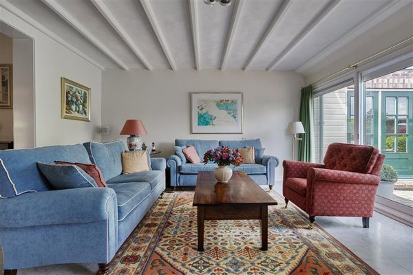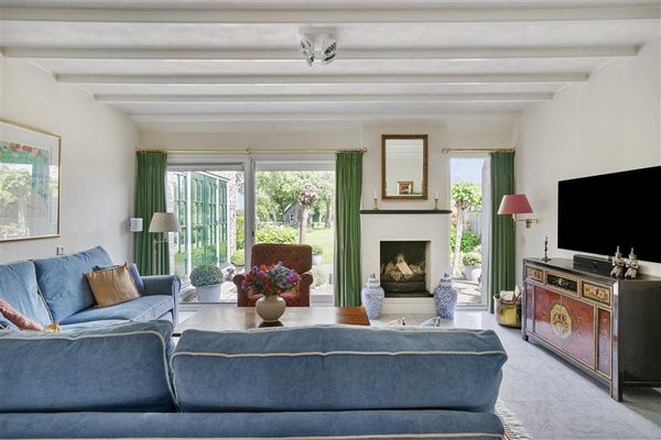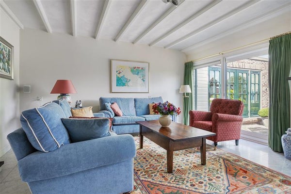 De sfeervolle ruime woonkamer is een heerlijke plek om te ontspannen. Het natuurlijke licht stroomt binnen door de grote ramen en creëert een heldere en uitnodigende sfeer. Door de schuifpui aan de achterzijde van de zithoek naar de tuin, zijn binnen en buiten met elkaar verbonden.