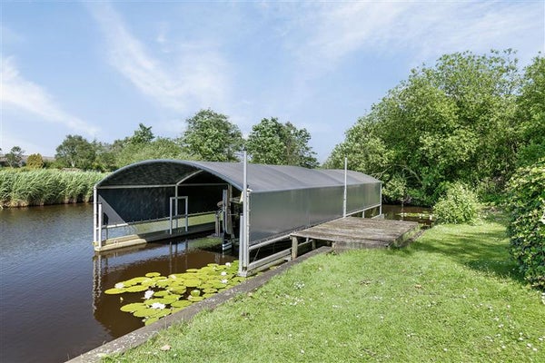 De hele waterkant is afgezet met een hardhouten schoeiing. Privacy is geborgd door twee schuttingen, waarbij het uitzicht intact blijft. Vanzelfsprekend is er ruimte voor een ligplaats voor een boot.