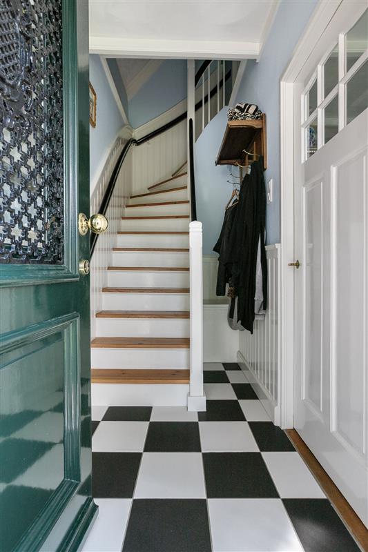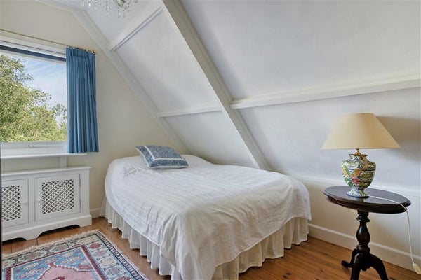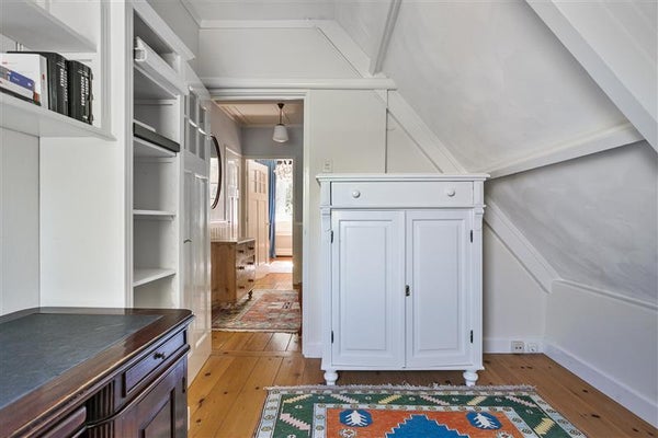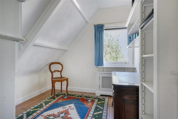 Een vliering in de nok van het dak biedt extra opbergruimte.