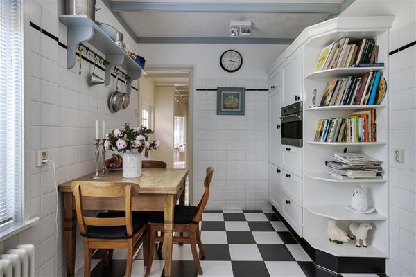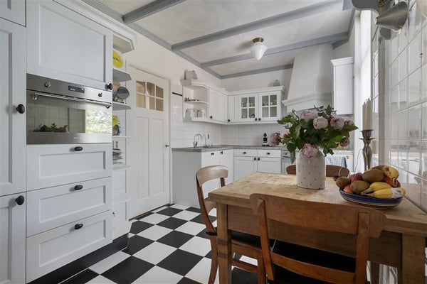 Begeef je naar de landelijke keuken (in U-opstelling) in een aparte ruimte. Het tegelwerk is in alle "natte" ruimtes hetzelfde. Het granito-aanrecht en -vloeren in de beide badkamers zijn door Candido ter plekke gemaakt. Je beschikt over voldoende werk- en opberg mogelijkheden. Ontbijten en theedrinken kan aan de keukentafel.
