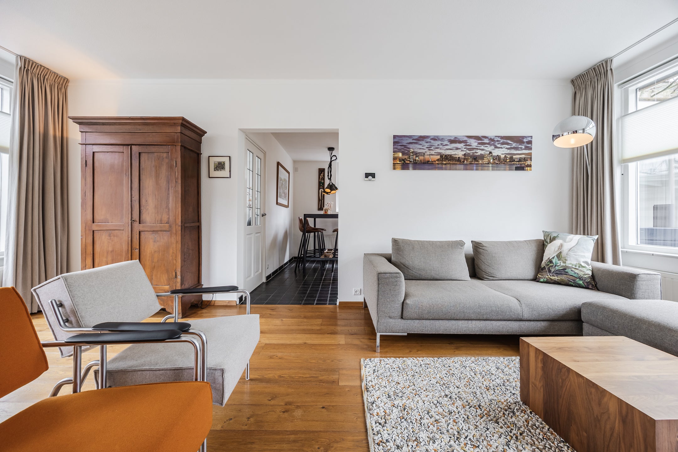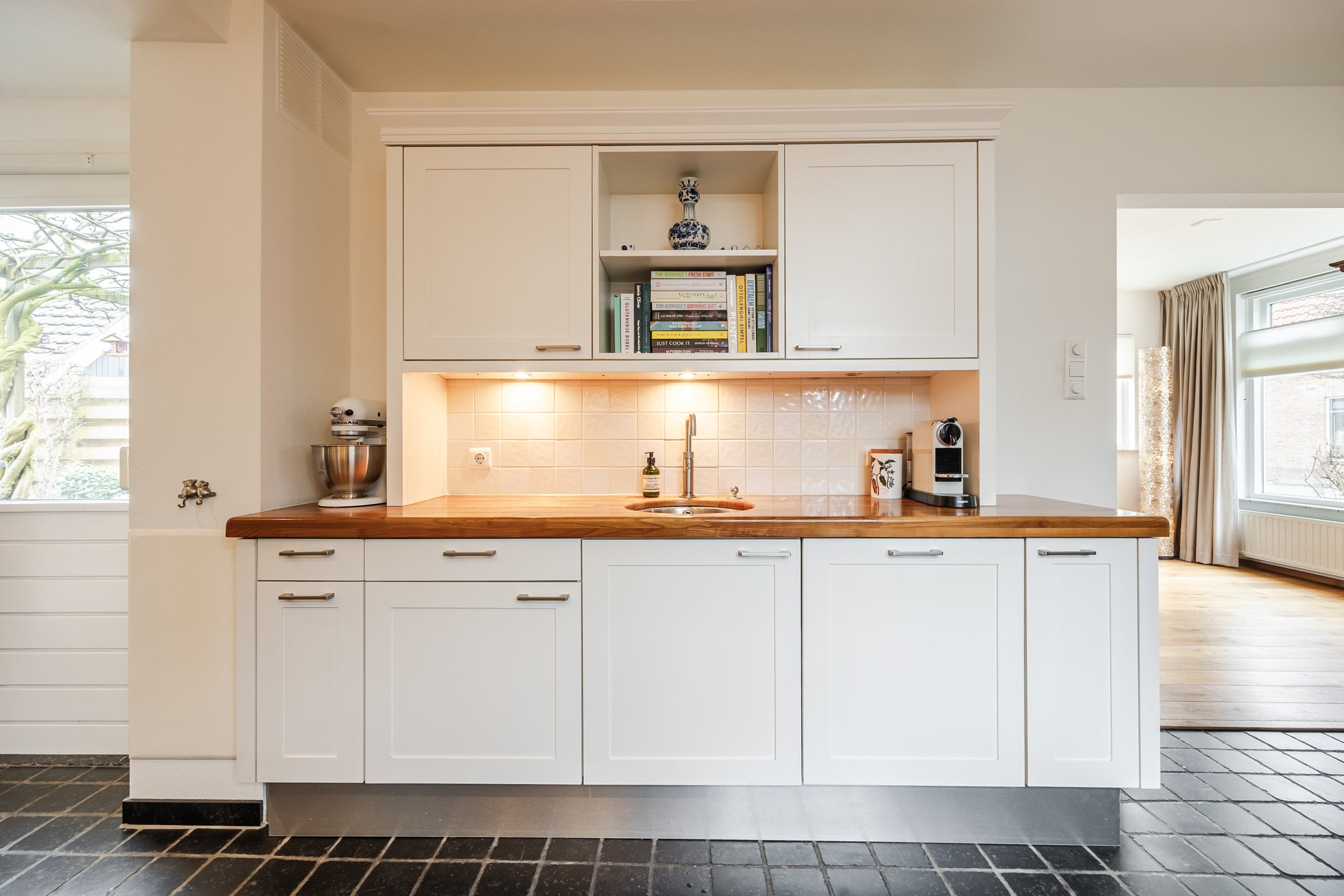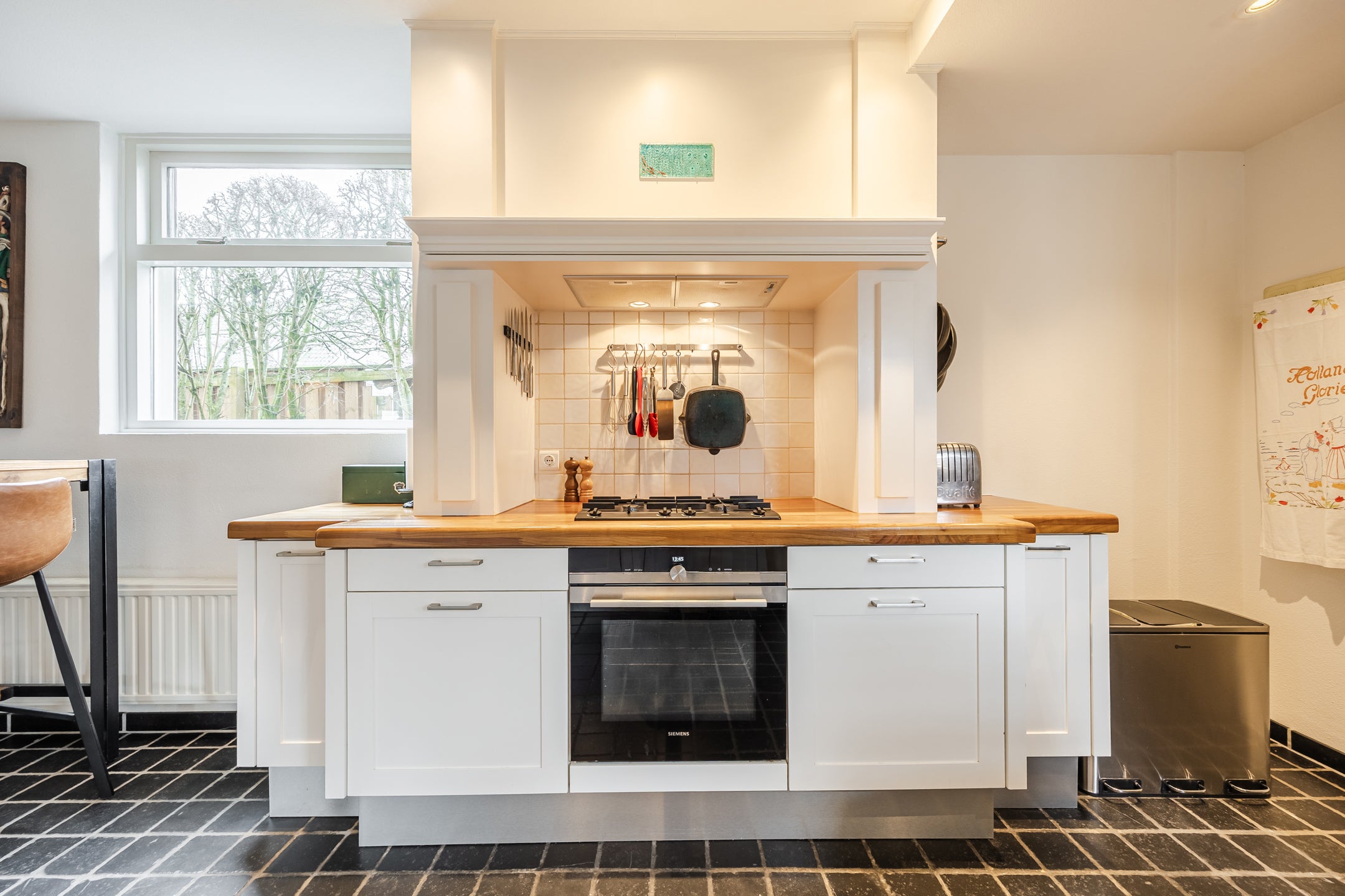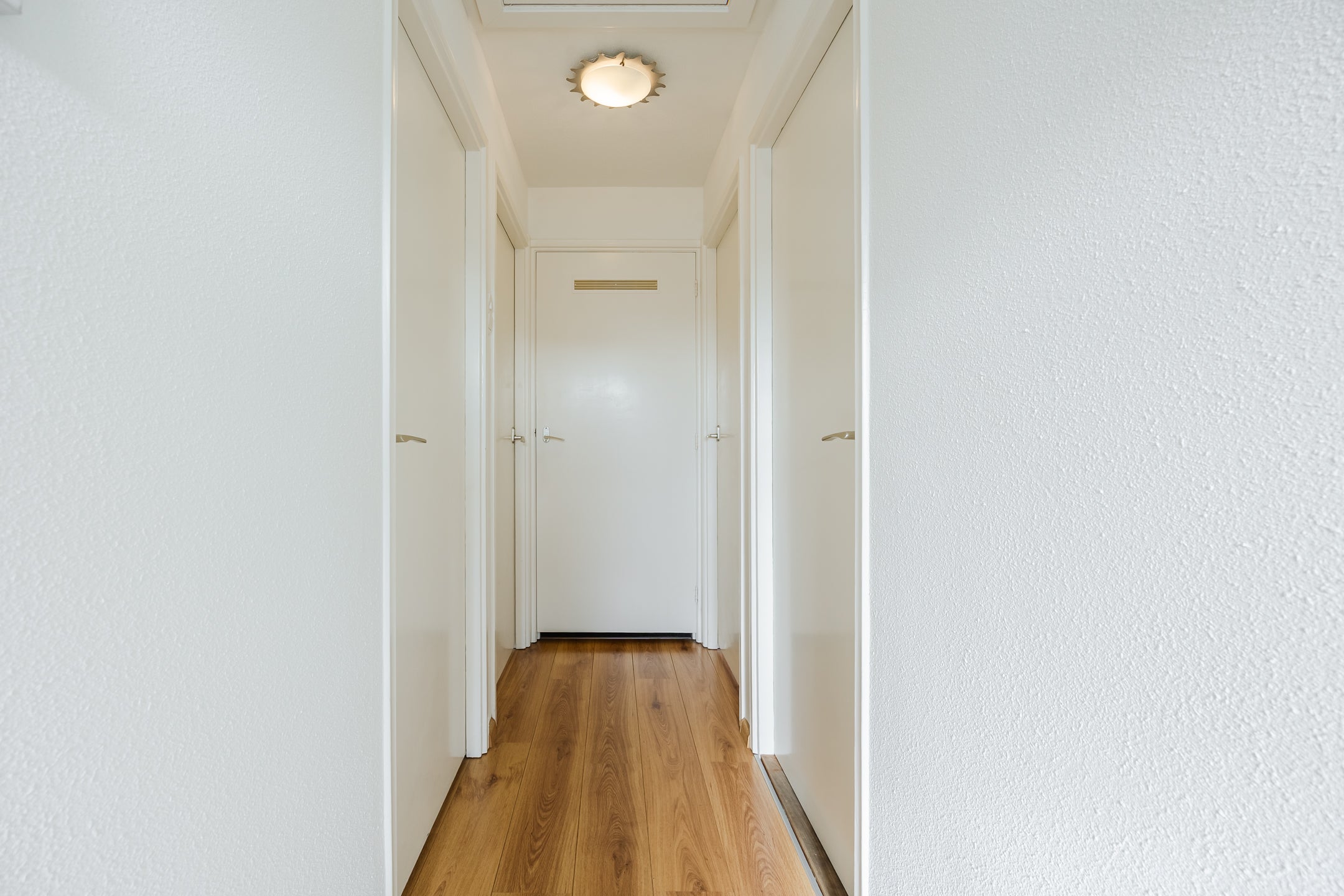 De indeling van de begane grond omvat een entree met een meterkast en toegang tot de ruime eetkeuken. Deze eetkeuken is semi-open verbonden met de sfeervolle woonkamer, voorzien van grote ramen en een eikenhouten vloer. De keuken is uitgerust met verschillende inbouwapparaten. Op de eerste verdieping bevinden zich drie slaapkamers, een praktische inloopkast en een badkamer met ligbad en dubbele wastafel. De zolder biedt extra opslagruimte.