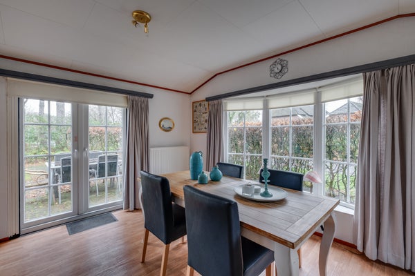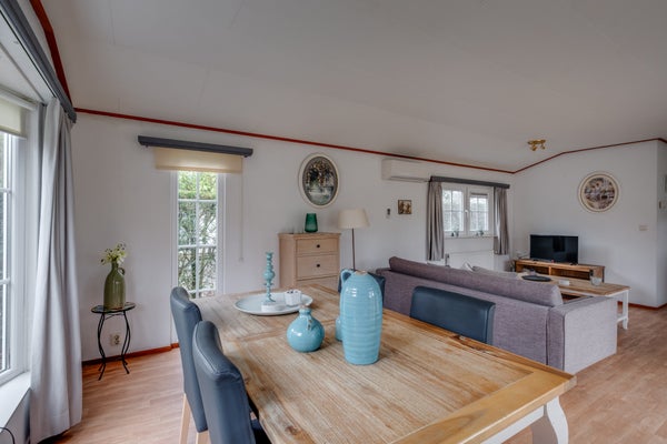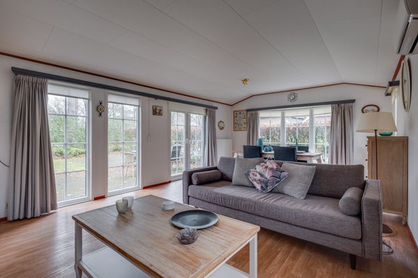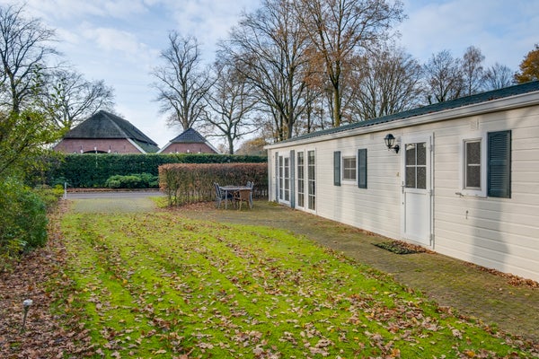 Het park ligt een kilometer van het dorp Laren en is goed bereikbaar. De tuin heeft een groot gazon en een terras op het zuiden, ideaal voor het genieten van de landelijke omgeving. Deze woning is beschikbaar voor recreatie en mag niet permanent bewoond worden.