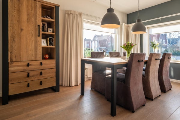 Deze moderne en ruime 2/1-kapwoning in jaren '20 stijl, gelegen aan de ontspannen Oostindie, biedt een Energielabel A en een vrij uitzicht. Met een royale woonkamer-keuken van circa 55 m² en 5 slaapkamers, is er voldoende ruimte. De open keuken is van alle gemakken voorzien, inclusief een inductiekookplaat en openslaande tuindeuren naar de mooi aangelegde achtertuin. De bijkeuken leidt naar de garage, die onder andere is uitgerust met een elektrische deur en isolatie. Op de eerste verdieping bevinden zich 3 slaapkamers en een moderne badkamer. De tweede verdieping heeft nog eens 2 slaapkamers en een bergruimte. Gelegen op 305 m² eigen grond, met parkeerplaatsen voor 3 auto’s. De wijk biedt diverse voorzieningen, waaronder scholen en goede busverbindingen. Dit goed onderhouden huis is een ideale gezinswoning.