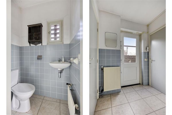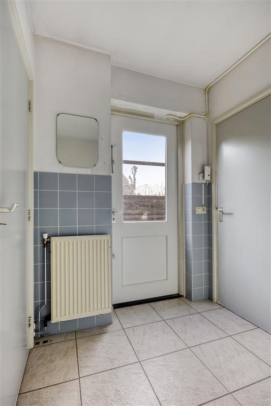 Aansluitend is er een praktische bijkeuken met toiletruimte, vaste kast en aansluitingen voor wasapparatuur, met directe toegang tot de achtertuin.