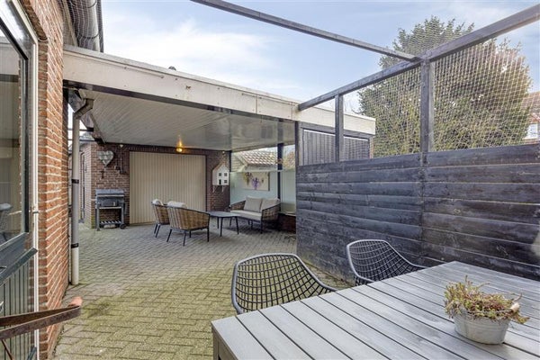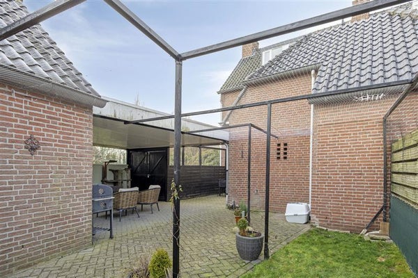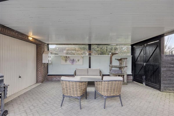 Achterop het perceel staat de grote stenen garage met vliering en elektra. Daarnaast is er een afsluitbare carport en een brede achterom: perfect voor fietsen, motoren, opslag of hobbyruimte.