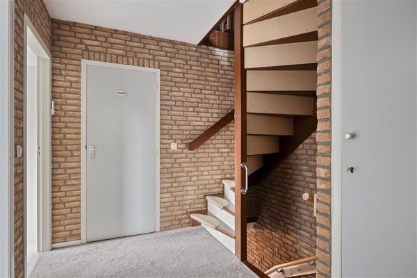 Via de diepe oprit (geschikt voor meerdere auto’s) bereik je de entree. In de hal bevinden zich de meterkast, de trapopgang en de toegang tot de woonkamer.