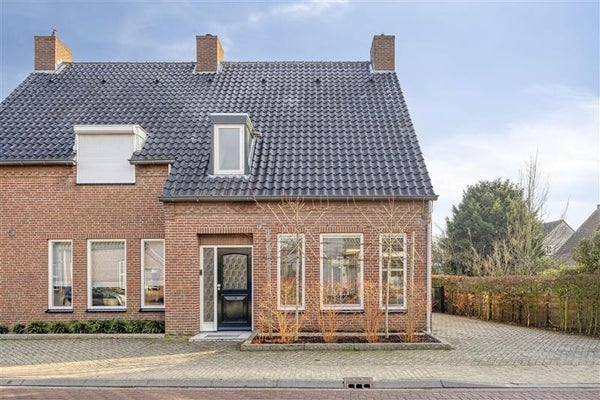 Aan de karakteristieke Dorpsstraat, op de grens van de historische dorpskern en het groene buitengebied van Leende, staat deze uitstekend onderhouden en verrassend ruime twee-onder-één-kapwoning. Een solide gebouwd woonhuis (1987) met 4 volwaardige slaapkamers, een manshoge kelder, een grote stenen garage met vliering, carport, brede oprit én een perceel van 431 m².
