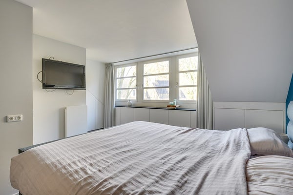 Op de eerste verdieping bevinden zich drie slaapkamers: twee ruime kamers en een derde, iets kleinere slaapkamer. Alle kamers zijn afgewerkt met strak stucwerk, een luxe pvc-vloer en op maat gemaakte inbouwkasten onder de kapschuinten, wat zorgt voor een rustige en luxe uitstraling. De moderne, deels betegelde badkamer beschikt over een douche, wastafelmeubel, tweede toilet en een grote verlichte spiegel.