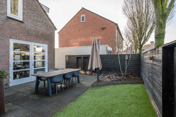 De voor- en achtertuin zijn verzorgd aangelegd met sierbestrating en beplanting. Aan de voorzijde kijk je vrij uit op een groenvoorziening, terwijl de achter- en zijtuin op het zonnige zuidwesten ligt. Het terras biedt volop ruimte voor een comfortabele zithoek en de tuin is volledig omheind en voorzien van een berging en achterom.