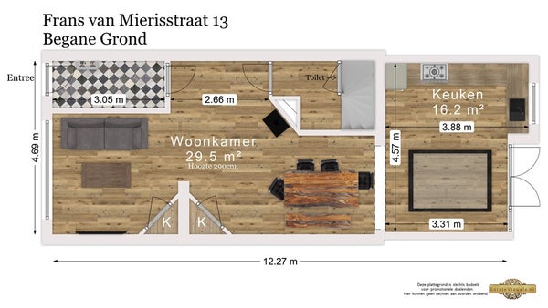 - Aanwezig (gelegen op het zuidoosten)