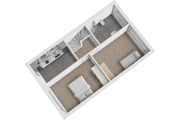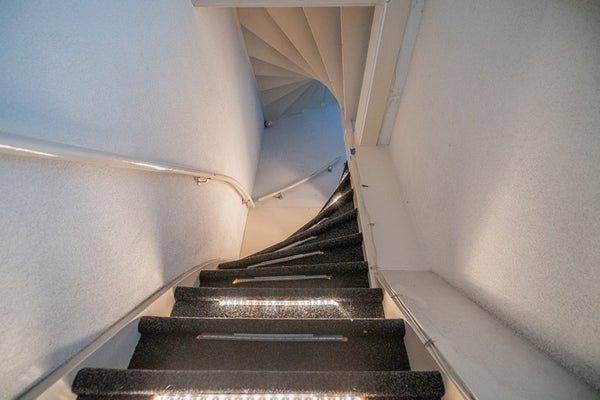 Landing with spacious bathroom. This floor has two bedrooms. Previously, there were three, but this has been replaced by an additional kitchen.