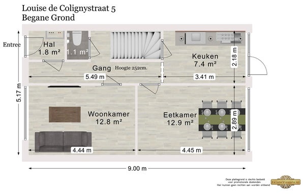 Entree, hal met meterkast en toilet. Trapopgang. Op deze verdieping zijn 2 kamers aanwezig, aan de achterzijde bevindt zich de keuken met toegang tot de achtertuin. De achtertuin is voorzien van een zeer ruime berging met achterom.