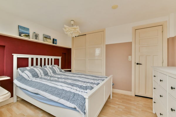 Via de overloop bereik je de drie slaapkamers. De twee slaapkamers aan de voorzijde zijn voorzien van een dakkapel, wat zorgt voor extra ruimte en lichtinval. De derde slaapkamer ligt aan de achterzijde van de woning en beschikt over een inbouwkast en openslaande deuren naar het dakterras. Tussen de drie kamers in bevindt zich de nette en gezellige badkamer. Deze is uitgerust met een ligbad/douchecombinatie, wastafel en een vaste kast.
