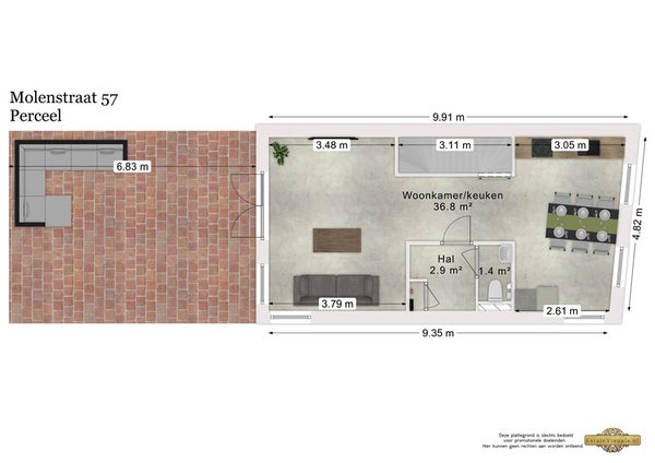 - Aanwezig (32 m², gelegen op het zuidwesten)