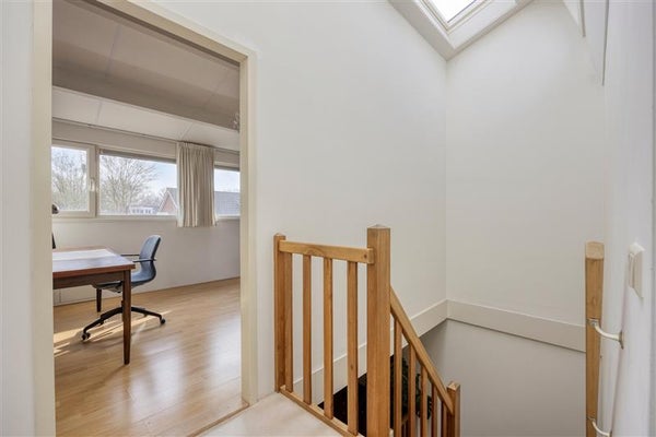 Op de overloop bevinden zich in de technische ruimte de CV ketel (Remeha) de aansluiting voor de wasmachine en wasdroger. De overloop is heerlijk licht door de aanwezigheid van 3 dakramen.