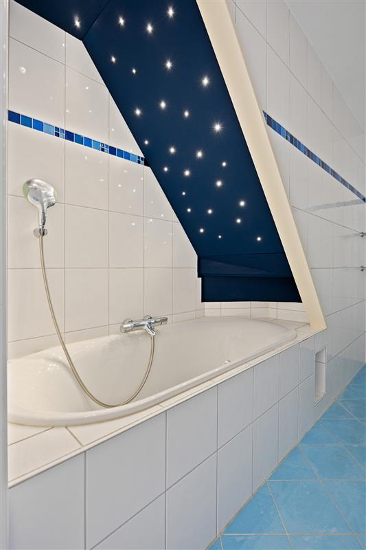 De tussenliggende badkamer is ruim te noemen en is voorzien van een ligbad (met sterrenhemel), inloopdouche, 2e toilet, wastafelmeubel, mechanische ventilatie en handdoekradiator.