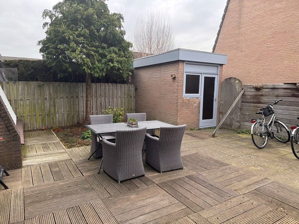 Via de keuken is er toegang tot de zonnige achtertuin op het zuidwesten, met een prettige vrije ligging. De tuin beschikt over een stenen berging met elektra en een achterom.