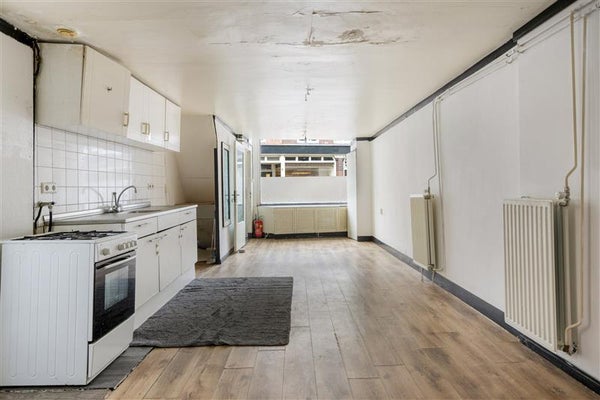 - Gebruiksoppervlakte van 71 m²: Naar eigen inzicht in te delen winkel-/kantoorruimte beneden en een bovenwoning met 2 keukens en 2 badkamers