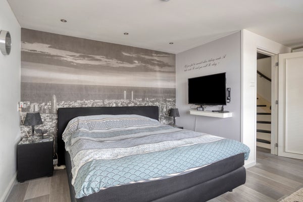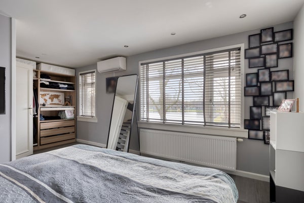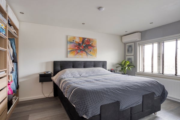 De eerste etage beschikt over twee royale slaapkamers en een badkamer met op de overloop een aparte wc. Beide slaapkamers zijn voorzien van airco.