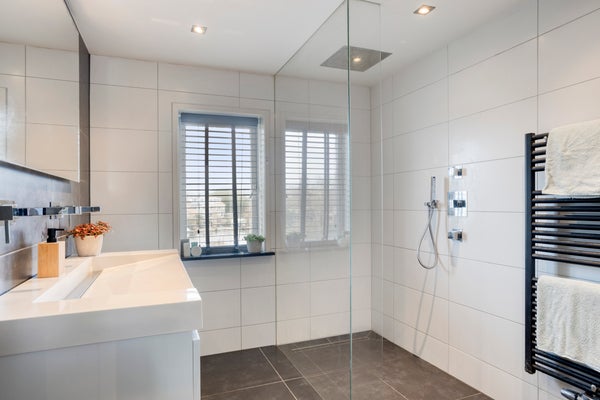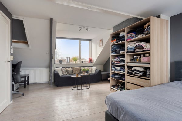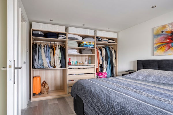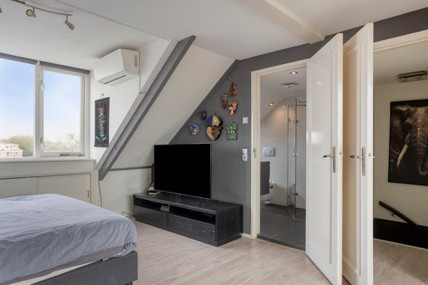 Op de tweede etage bevindt zich nog een ruime derde slaapkamer met eigen badkamer met douche en wc en in de knieschotten nog extra bergruimte. Ook deze kamer is voorzien van airco, zodat het heerlijk koel blijft in de zomer.