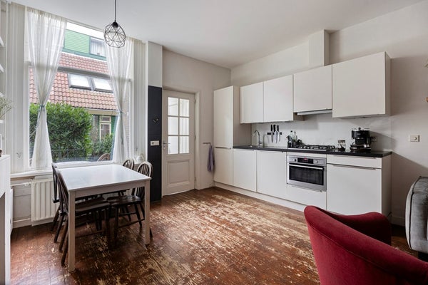 De nette open keuken is compleet uitgevoerd met vaatwasser, oven, 4-pits gaskookplaat, koelkast, vriezer en een afzuigkap. Ga eens zitten op de bank en ervaar het centrumleven van Leiden.