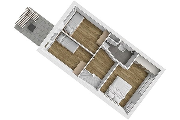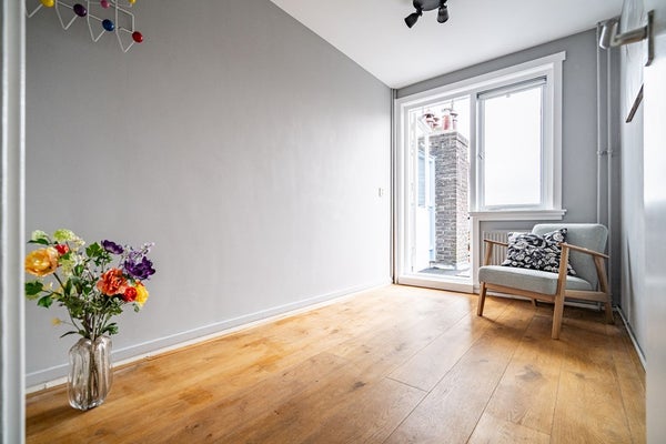 On the first floor, you'll find three lovely bedrooms, all with parquet flooring. One of the bedrooms offers direct access to the delightful roof terrace at the rear. A definite plus: here, you can enjoy the sun until 8 PM in midsummer – the longest of the entire property. A perfect place to relax and end the day. The bathroom was renovated two years ago and is equipped with a shower, second toilet, sink, spotlights, designradiator, and comfortable underfloor heating.