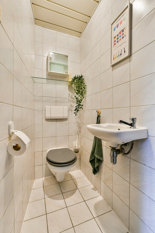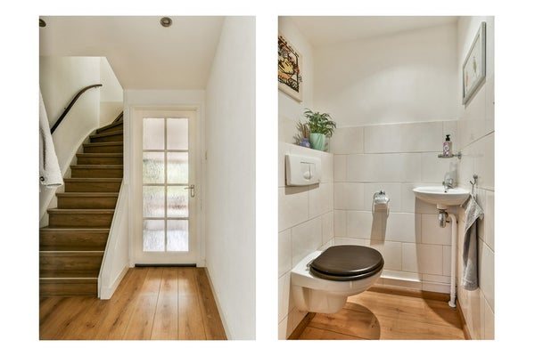 De overloop geeft toegang tot de trap naar de tweede verdieping en de verschillende vertrekken. Op deze verdieping bevinden zich drie slaapkamers: twee aan de achterzijde en één aan de voorzijde, waarbij de slaapkamer aan de voorzijde is voorzien van een eigen wastafel. Daarnaast is er een separaat hangend toilet met fontein, wat extra comfort biedt voor gezinnen. De badkamer is compleet en verzorgd ingericht met een ligbad, douchecabine, dubbel wastafelmeubel en handdoekradiator.