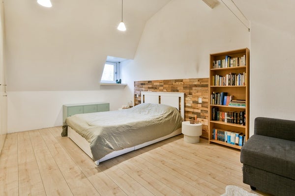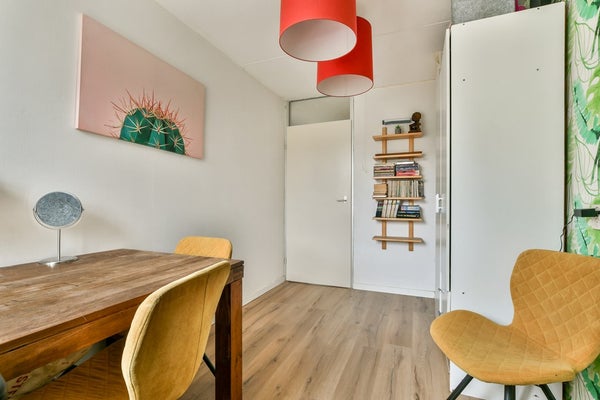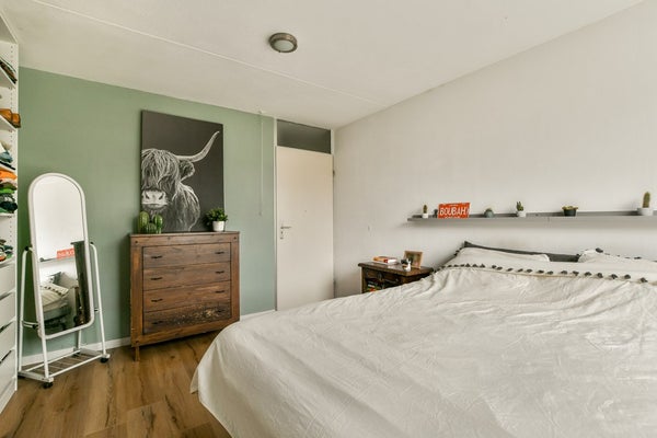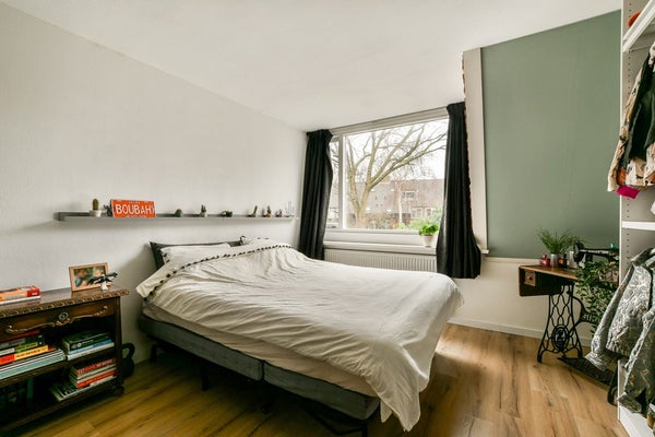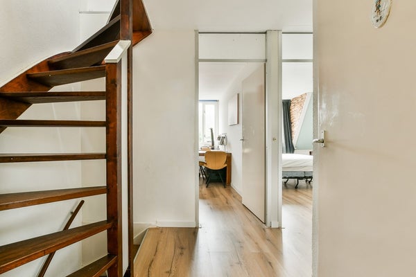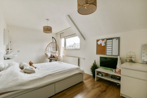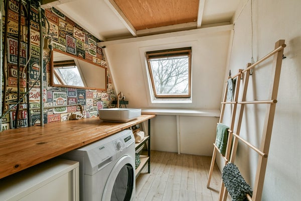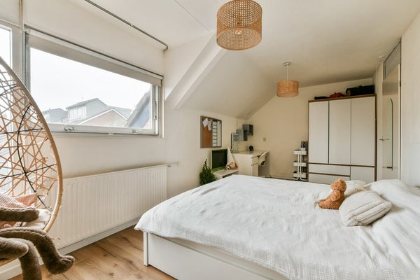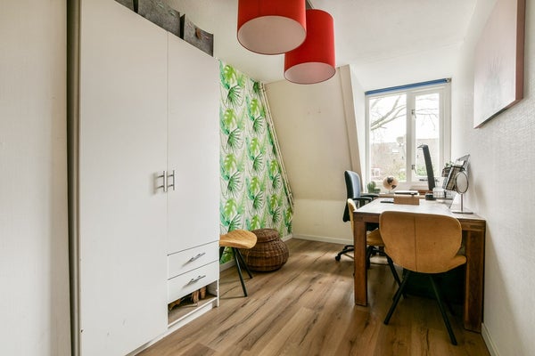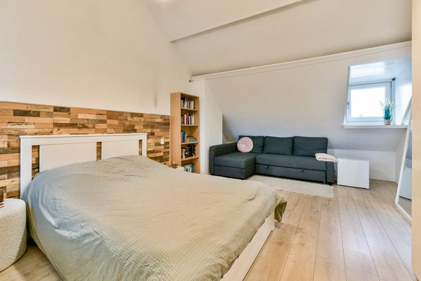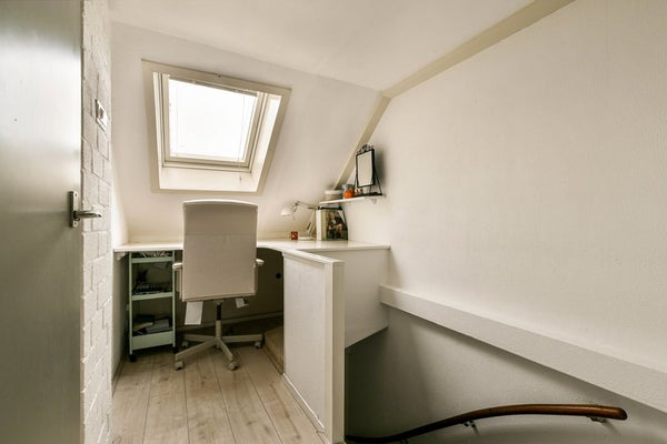 De tweede verdieping biedt verrassend veel extra ruimte. Op de overloop bevindt zich een vast bureau, een Velux dakraam en praktische bergruimte achter de knieschotten. De aparte wasruimte is voorzien van aansluitingen voor de wasmachine, een wastafel, een Velux dakraam en toegang tot de bergliering, waar zich tevens de opstelplaats van de Intergas combiketel bevindt. Verder beschikt deze verdieping over een vierde slaapkamer, voorzien van vaste kasten, waardoor deze ruimte uitstekend geschikt is als master bedroom, werkruimte of logeerkamer.