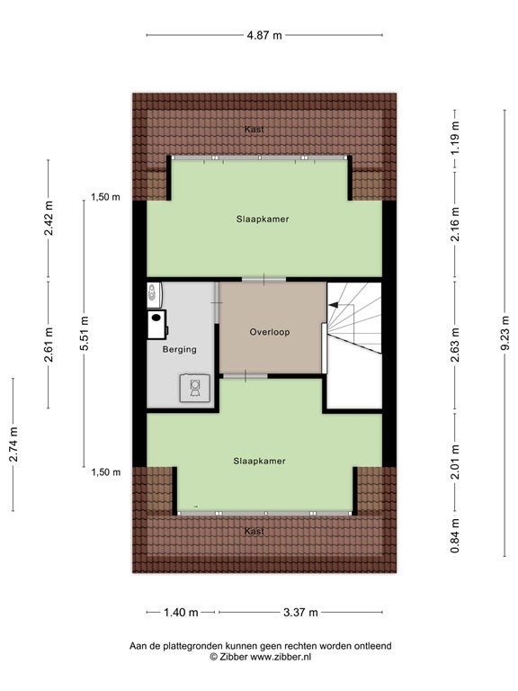 - Aanwezig (34 m², gelegen op het zuidoosten)