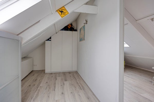 Door naar de zolderverdieping. Deze bestaat nu uit een ruime voorzolder met de cv-opstelling (Intergas HRE, 2016), de wasmachineaansluiting, kastruimte en veel extra bergruimte. Daarnaast is er een grote voorslaapkamer met een dakkapel. Ook hier zie je weer dat alles strak en goed is afgewerkt. Op zolder zijn nog toekomstmogelijkheden: een vierde slaapkamer is eenvoudig te realiseren of de voorslaapkamer te vergroten dmv een grotere dakkapel. Natuurlijk horen daar wel de betreffende vergunningen bij.
