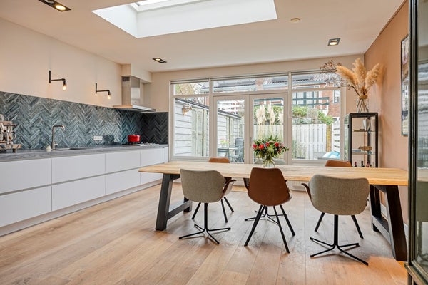 Naast een uitgebouwde woonkamer van circa 12 meter diep zijn (ja dat lees je goed) is aan alles gedacht. Dankzij ook de breedte van 5 meter is het een huis dat echt anders aanvoelt dan gemiddeld. De stalen deuren, houten vloer en strakke afwerking maken het geheel stijlvol en warm. De luxe open keuken is compleet uitgerust en perfect verbonden met de eetruimte. Vergeet de openslaande deuren niet aan de achterkant. Die brengen je naar de zonnige achtertuin met schuur en achterom. Met momenteel 3 slaapkamers, maar eenvoudig uit te breiden naar 4 of zelfs 5 slaapkamers, is dit een flexibel gezinshuis in een luxe jasje. Wat te denken van de badkamer. Modern en luxe uitgevoerd en voelt als een kleine wellness. Conclusie: Alles in deze woning is strak, modern en instapklaar.