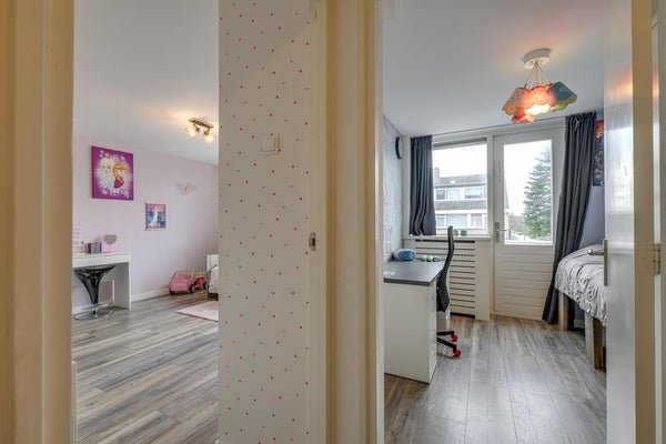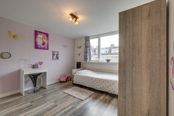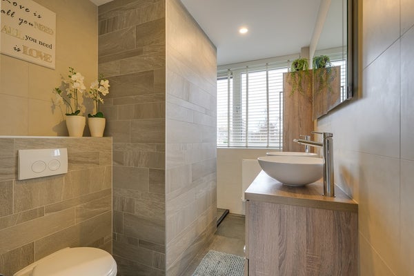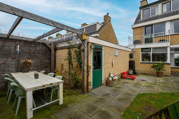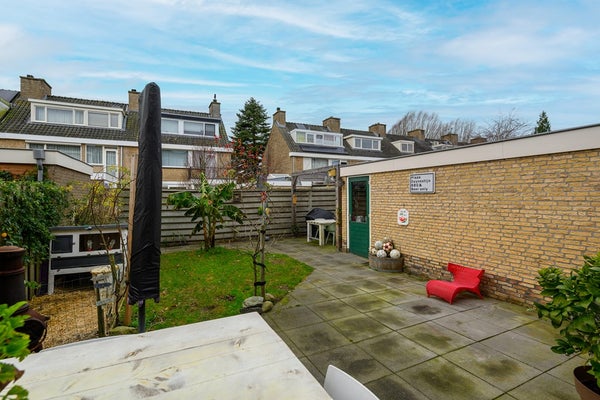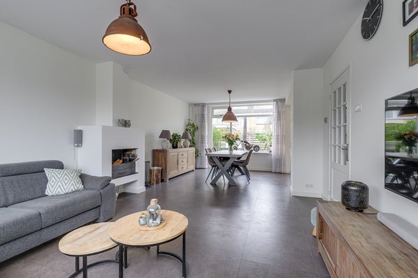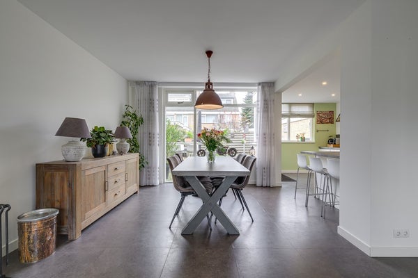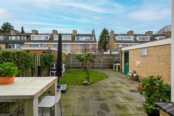 De zuidgerichte achtertuin is zonnig, groen en praktisch ingericht met een prettig terras. Je hebt directe toegang tot de garage, wat het dagelijks leven net even makkelijker maakt.