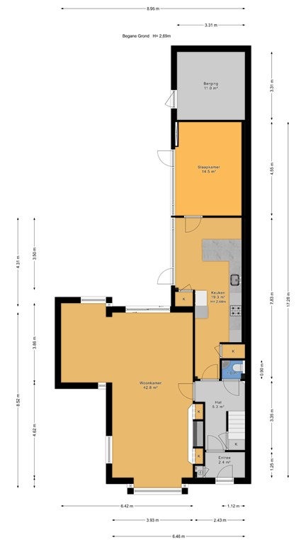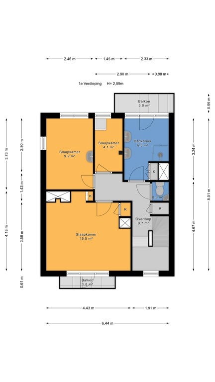 - Aanwezig (69 m², gelegen op het noordoosten)
