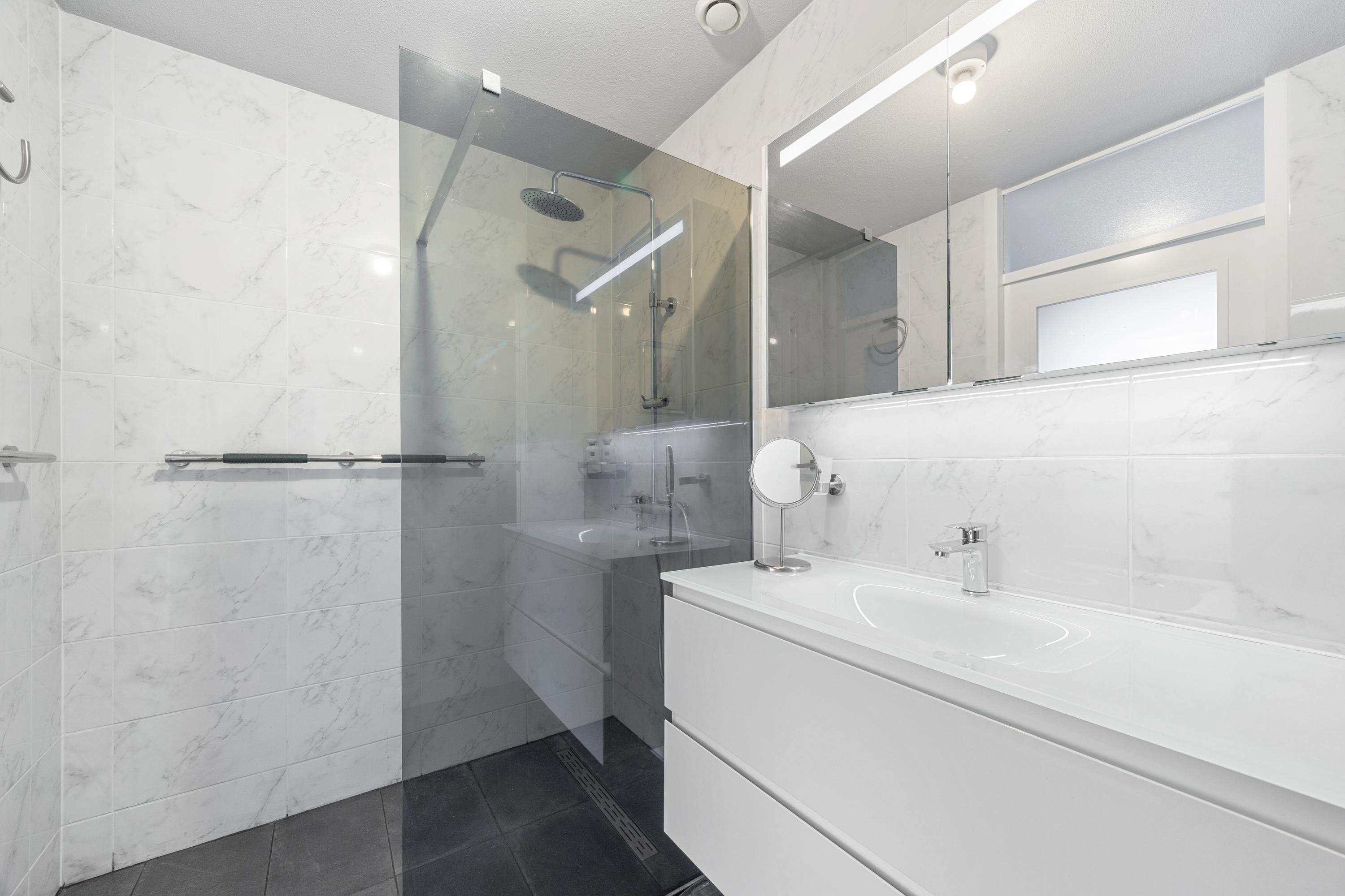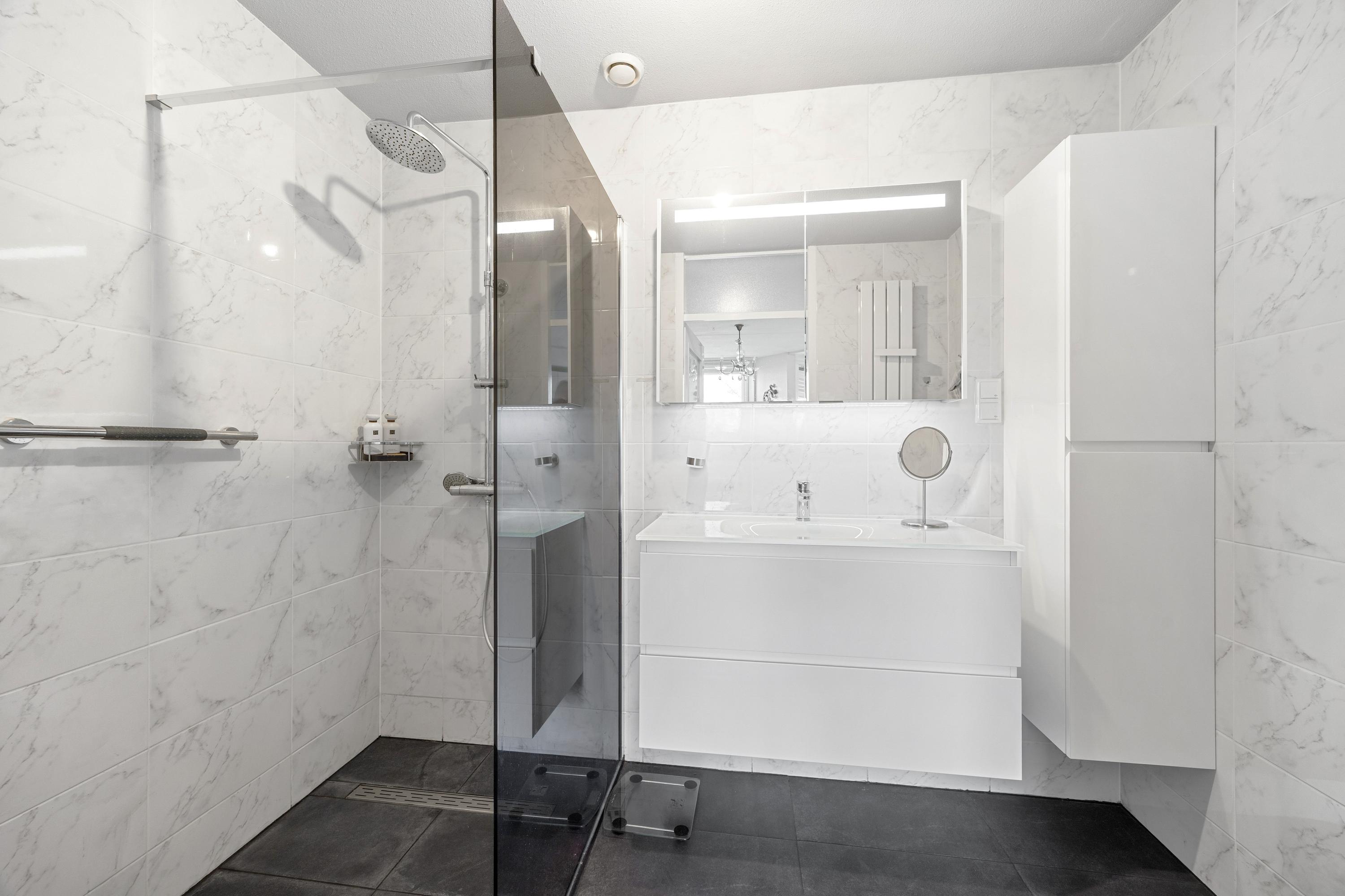 De indeling omvat een ruime woonkamer met veel lichtinval en een open keuken, evenals een berg-/wasruimte. Boven bevindt zich de tweede slaapkamer met een tweede badkamer. De woning is voorzien van een garage, energie label A, en biedt veel bergruimte. Nabij zijn openbaar vervoer, natuurgebieden, en voorzieningen als Medisch Centrum Haaglanden.