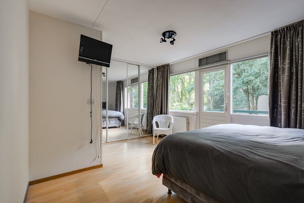 Op de eerste verdieping vind je drie slaapkamers, waaronder een ruime hoofdslaapkamer met balkon en uitzicht op het groen. De moderne badkamer is voorzien van een douche, wastafelmeubel, toilet en aansluiting voor de wasmachine.