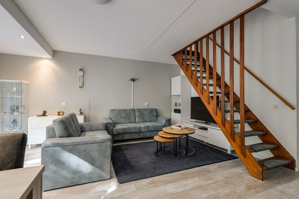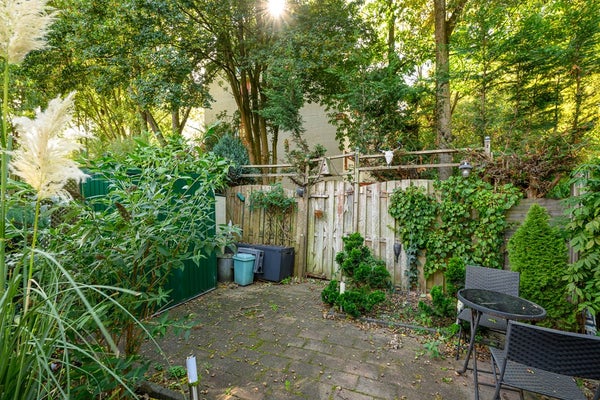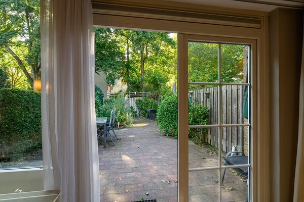 Bij binnenkomst valt direct de lichtinval op. De woonkamer strekt zich uit over de volle breedte van de woning, met openslaande deuren naar de achtertuin. Hier geniet je van rust, groen en privacy – een plek waar vogels de boventoon voeren in plaats van verkeer. De tuin ligt gunstig voor de middag- en avondzon en biedt ruimte genoeg voor een loungeset of barbecuehoek.