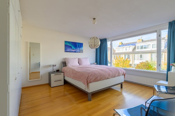 De hoofdslaapkamer aan de achterzijde is opvallend ruim en licht. Op deze verdieping vind je twee fijne slaapkamers, waarvan één toegang heeft tot het balkon. Dankzij de rustige kleuren en prettige lichtinval voelen alle kamers direct uitnodigend. Op de overloop is een aparte wasruimte aanwezig.