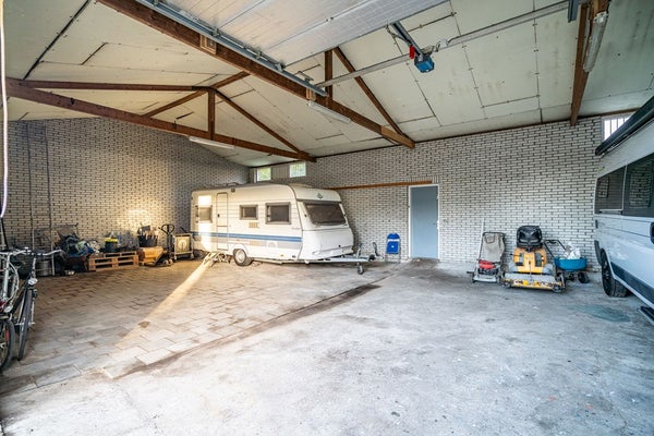 Op het perceel bevinden zich twee garages en een enorme loods. Deze loods is multifunctioneel inzetbaar: ideaal voor beroepsmatig gebruik, een hobbyruimte, werkplaats of opslag – hier kan vrijwel alles. Een groot deel van het perceel bestaat uit grasland, dat ooit is bijgekocht. Perfect voor het houden van paarden, schapen of andere hobbydieren. Achter de loods ligt bovendien nog een royaal stuk grond dat zich uitstekend leent voor een moestuin of extra buitenruimte.