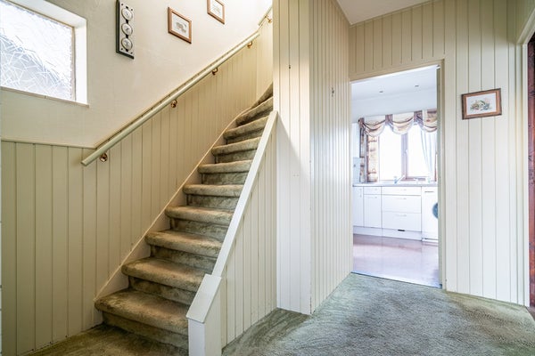 De woning kan op meerdere manieren worden betreden, maar we nemen u graag mee via de voordeur. In de ruime hal vindt u de vernieuwde meterkast (8 groepen + 2 aardlekschakelaars), een toiletruimte en de vaste trap naar de verdieping.