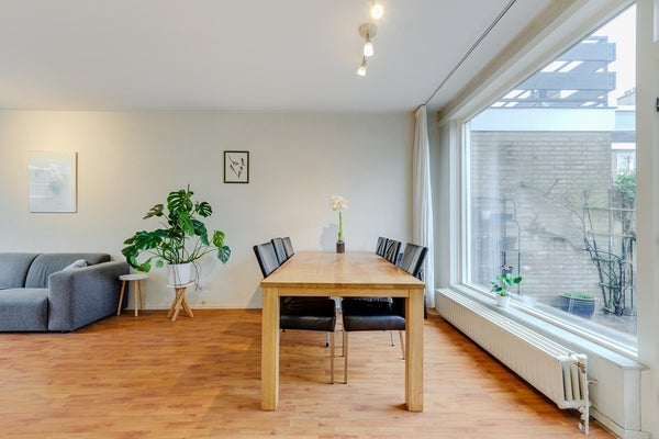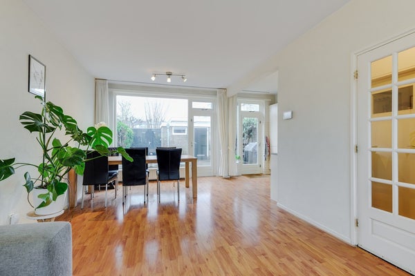 De voortuin biedt een verzorgde entree en een prettige zitplek. Binnen valt direct het lichte en ruimtelijke karakter op. De royale doorzonwoonkamer profiteert van grote raampartijen aan zowel voor- als achterzijde, waardoor het daglicht rijkelijk naar binnen stroomt. De open indeling maakt het een fijne leefruimte waar wonen, eten en samenzijn moeiteloos samenkomen.