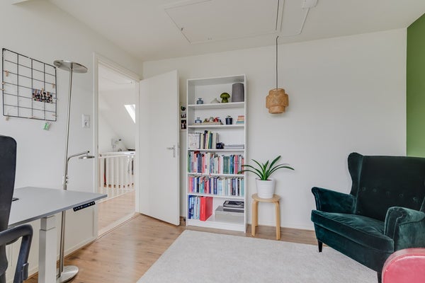 De tweede verdieping biedt nog eens twee volwaardige kamers en een tweede badkamer. Ideaal voor een groter gezin, gastenverblijf of werken aan huis. De speelse kapconstructie en grote ramen zorgen voor een lichte en sfeervolle uitstraling.