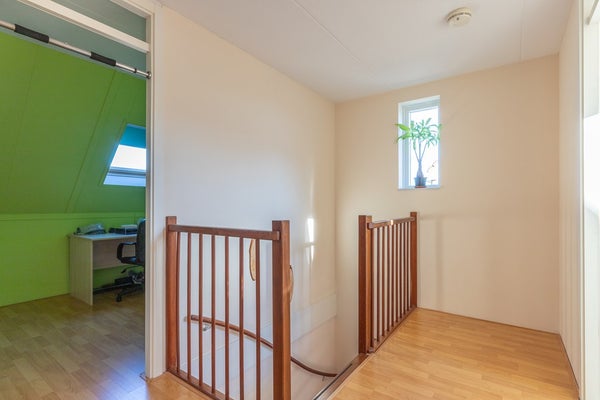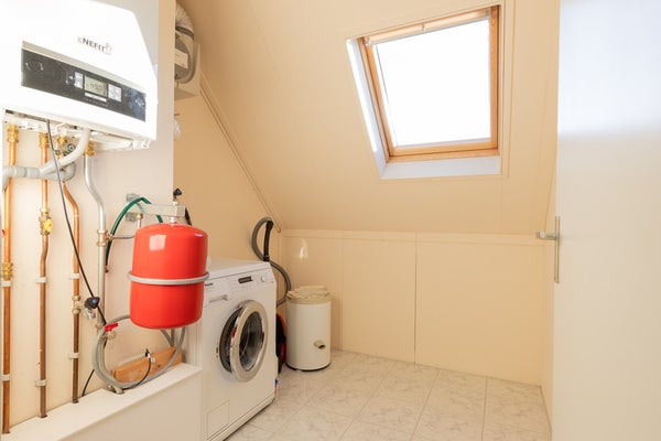 Ook naar de tweede verdieping is er een open hardhouten trap. Aan de voorzijde van de woning is een vierde slaapkamer met twee velux dakramen. De vijfde slaapkamer aan de achterzijde heeft één velux dakraam. De aparte wasruimte is voorzien van aansluitingen voor wasmachine/droger en de c.v. (Nefit 2021). Via de vlizo trap is de ruime vliering te bereiken.