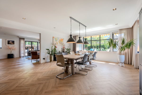 - De vrijstaande woning heeft een woonoppervlakte van 373 m² en beschikt over 6 kamers, waarvan 5 slaapkamers;