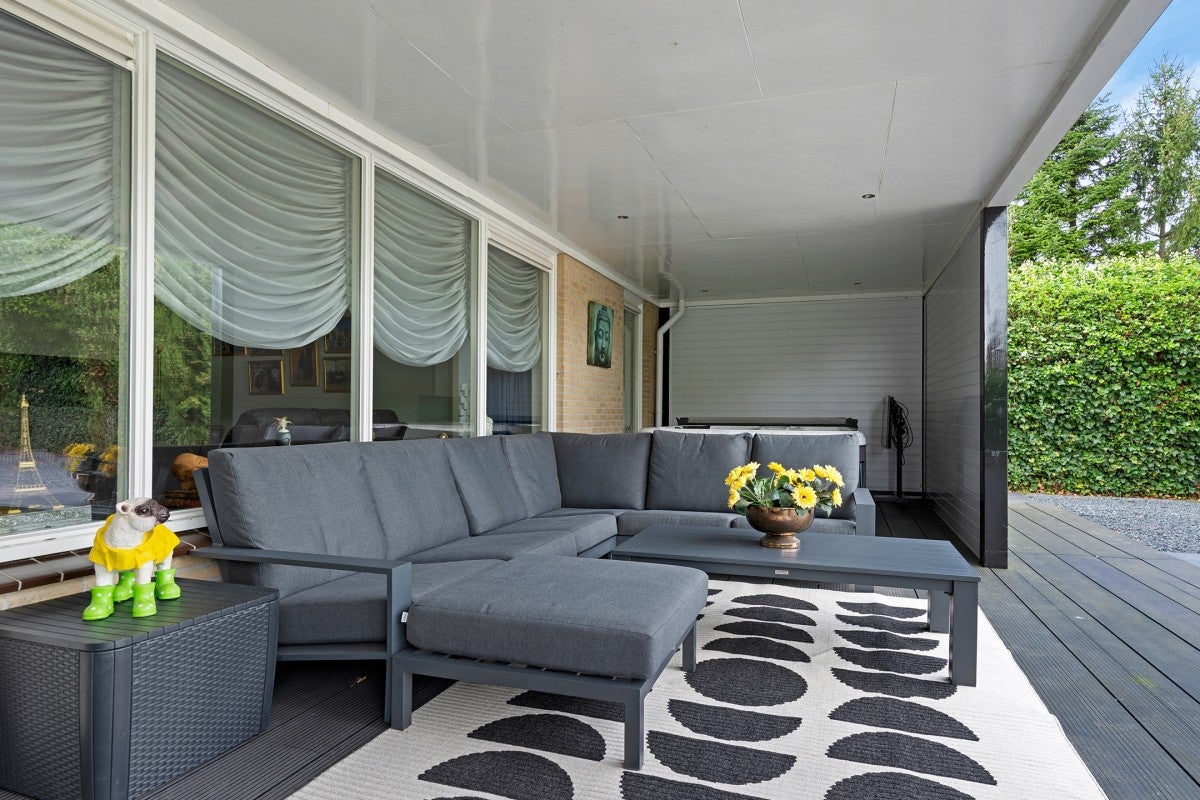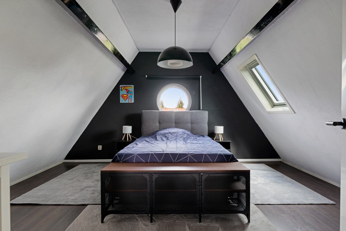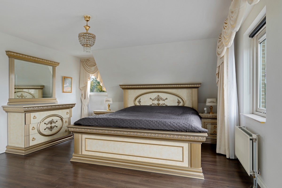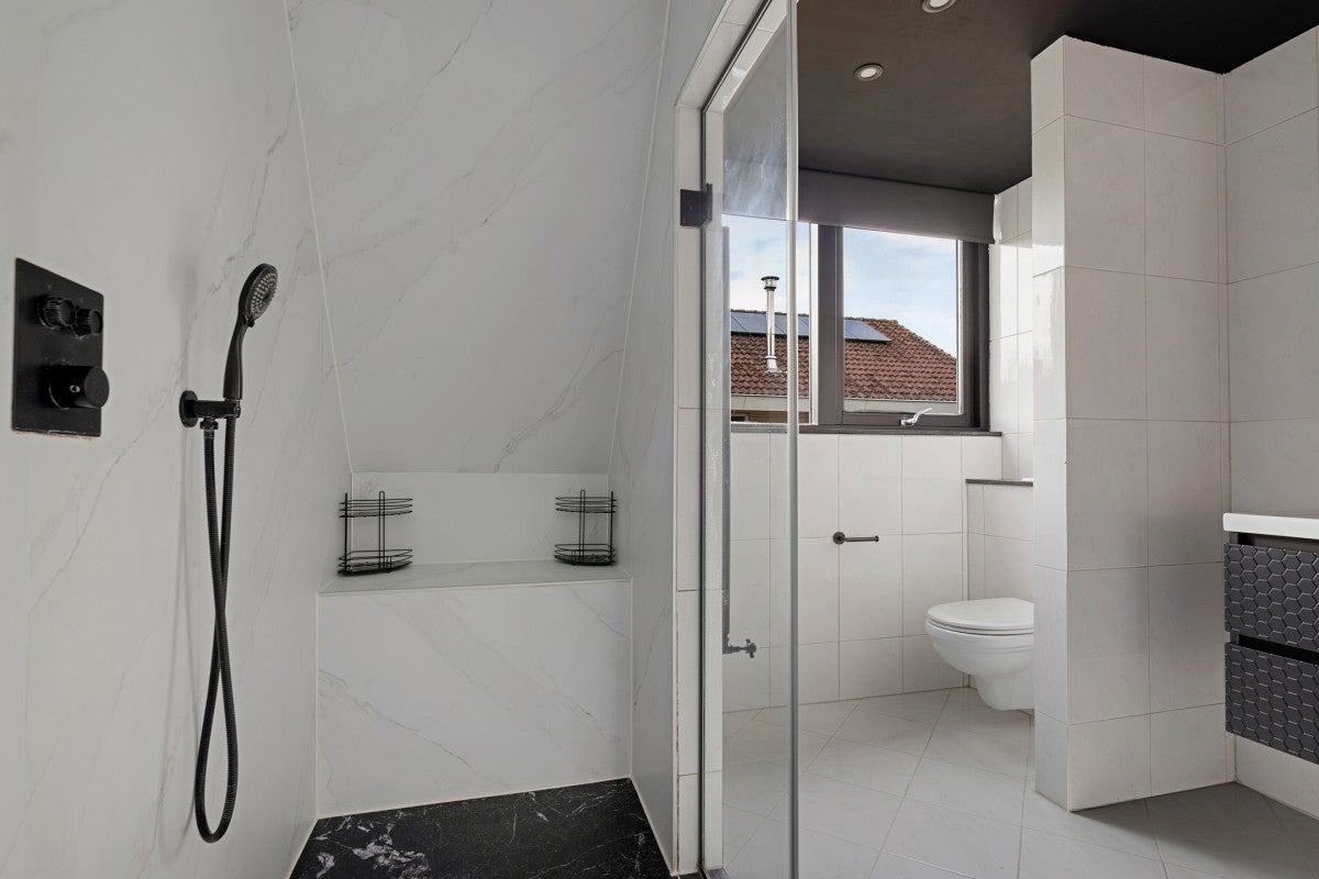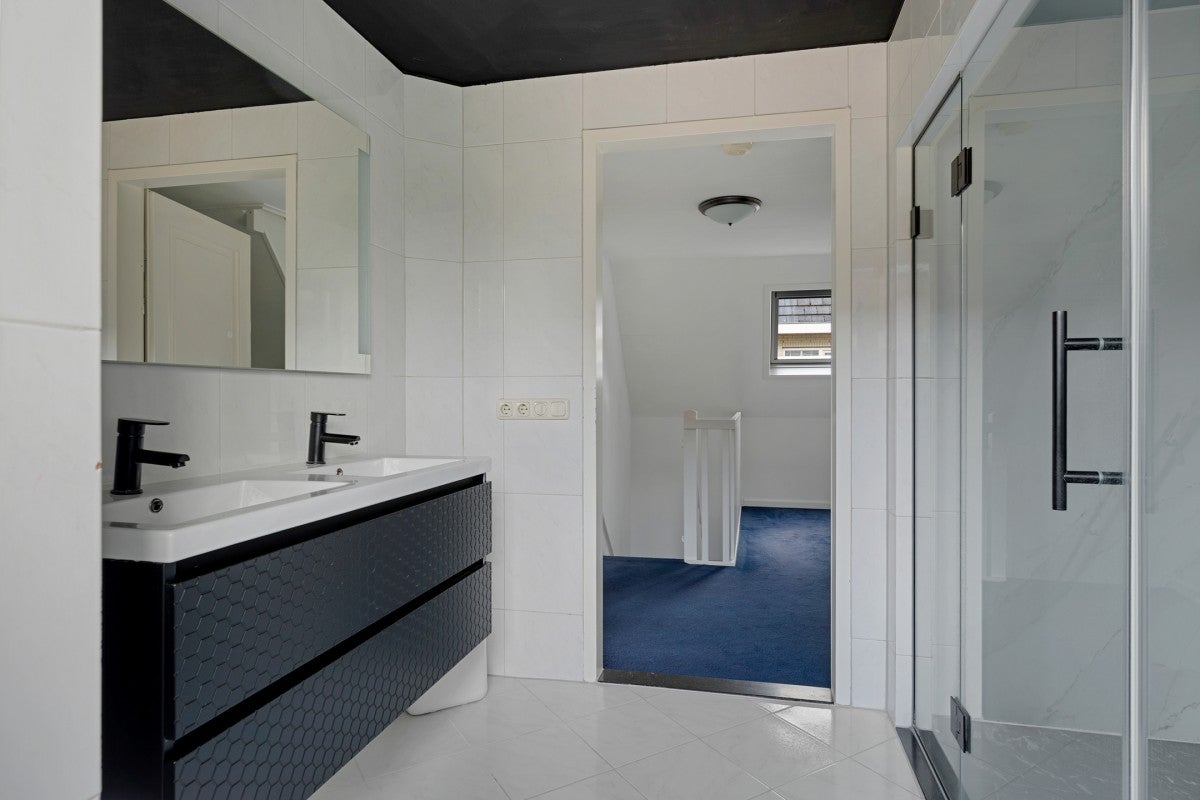 Op de eerste verdieping zijn drie slaapkamers, waaronder een hoofdslaapkamer met inloopkast en een luxe badkamer. Op de zolder zijn nog eens twee slaapkamers aanwezig. De onderhoudsvriendelijke tuin heeft een groot terras, een verwarmd zwembad, en voldoende ruimte voor een carport.